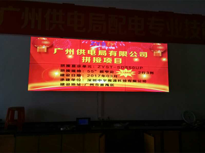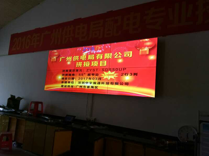 拼接項(xiàng)目:廣州市供電局拼接單元:ZYST-SD550UP拼接拼縫:3.5mm拼接規(guī)格:2*3拼接尺寸:55寸拼接屏安裝方式:壁掛承建地址:廣州市番禺區(qū)供電局承建日期:2017年3月承建單位:深圳中宇視通科技有限公司
