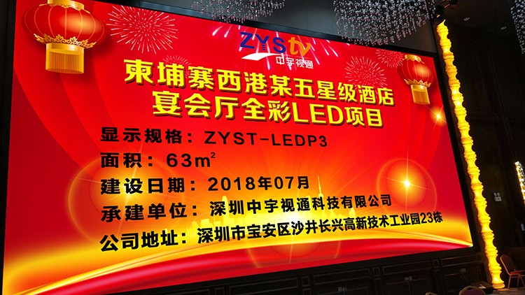柬埔寨西港某五星級酒店宴會(huì)廳P3全彩LED顯示屏項(xiàng)目