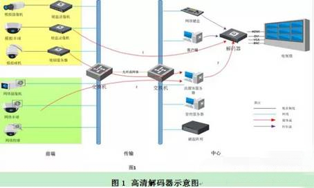 一個完整的高清監(jiān)控系統(tǒng),必須涵蓋前端、傳輸、后端以及中心各個環(huán)節(jié),缺一不可。其中,前端負責高清圖像的采集,傳輸負責高清圖像的輸送,后端負責高清圖像的存儲,中心負責高清圖像的顯示和業(yè)務的管理??梢哉f,一套高清監(jiān)控系統(tǒng),真正給用戶體現(xiàn)直觀價值的就在于中心的圖像高清顯示,而這離不開高清解碼器。