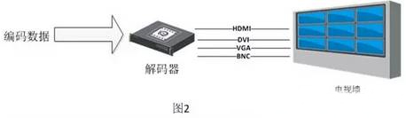 高清解碼器的主要作用,在于接收前端高清編碼圖像并解碼,然后通過自身的各種視頻 輸出接口,如HDMI/DVI/VGA/BNC,輸出顯示到電視墻上。它與前端攝像機正好是一個正反過程,前端攝像機輸入圖像,進行編碼;解碼器進行解碼,輸出圖像。針對項目大小和中心電視墻的規(guī)模,高清解碼器又有兩種主要的應用: