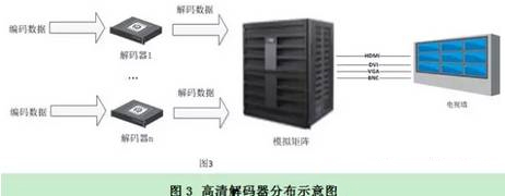 對于中大型規(guī)模電視墻,顯示控制設備一般為模擬矩陣或數(shù)字矩陣,那么高清解碼器主要負責接收網(wǎng)絡編碼數(shù)據(jù)并解碼,然后將解碼后的數(shù)據(jù)作為矩陣的輸入。