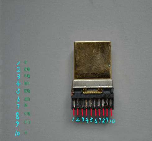 1、液晶拼接屏HDMI線每個生產(chǎn)廠家不同,色序、焊接順序不同,下面以“中宇視通”生產(chǎn)的“HDMI”高清視頻線為主。拼接屏HDMI高清線由19根線組成,如下圖: